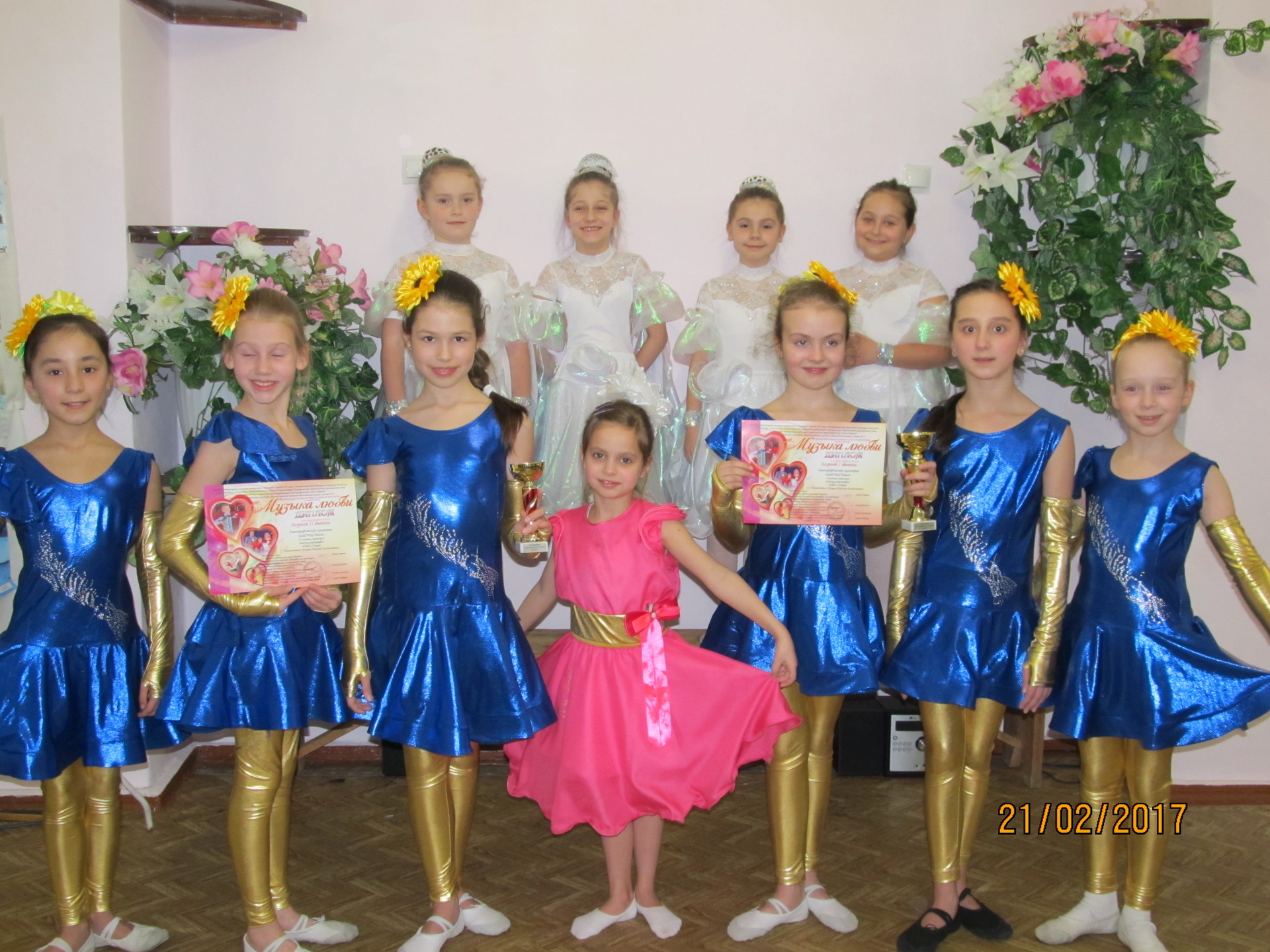 Поздравляем! Юные таланты танцевального коллектива "Gold Way Dance" Детской школы искусств города Покрова привезли награды лауреатов I степени и лауреатов II степени, а также два кубка, сладкие подарки с VIII Международного фестиваля-конкурса искусства и творчества "Музыка любви", который состоялся 18.02.2017 года в городе Днепре.