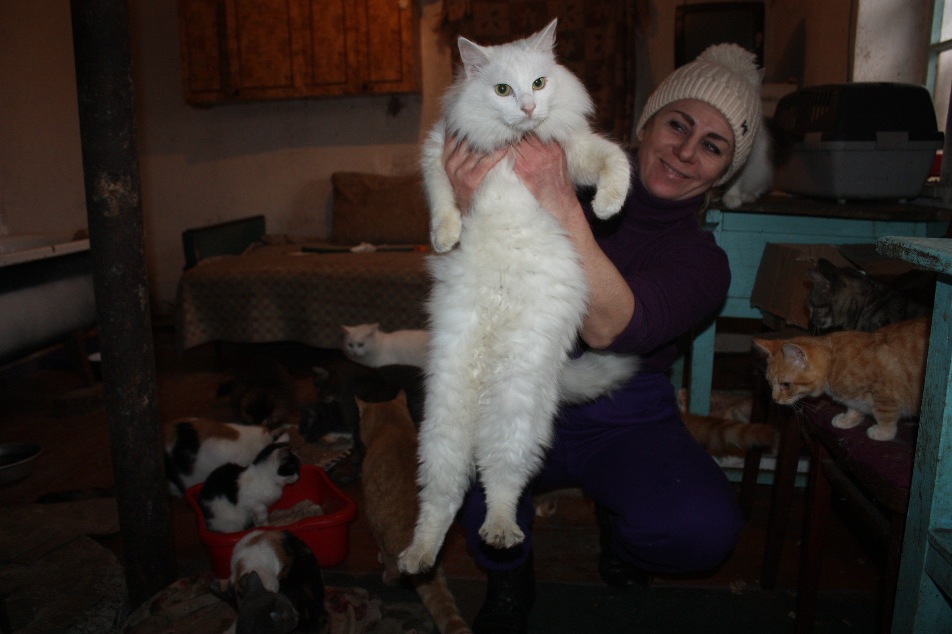 В приюте практически у каждого животного есть своя история, зачастую связанная с человеческой жестокостью и безразличием. Честно говоря, очень тяжело писать о том, что пережили ни в чем не повинные коты и собаки. Их били, резали, кололи, переезжали машинами, в них стреляли и делали другие вещи, от одного упоминания которых нормальному человеку станет дурно. Некоторым пострадавшим в итоге пришлось ампутировать лапы, удалять глаза, и проводить прочие сложные, но необходимые для выживания операции. Зато сейчас животные, которые прошли курс лечения, чувствуют себя намного лучше. Они упитанные, веселые и игривые. А самое удивительное, что, несмотря на все пережитое, большинство животных по-прежнему тянутся к людям. Не успели молодежные активисты войти в дом, как самые смелые коты стали выпрыгивать им на руки и на плечи, подставлять головы, чтобы их гладили, играться и стараться всячески привлечь внимание.