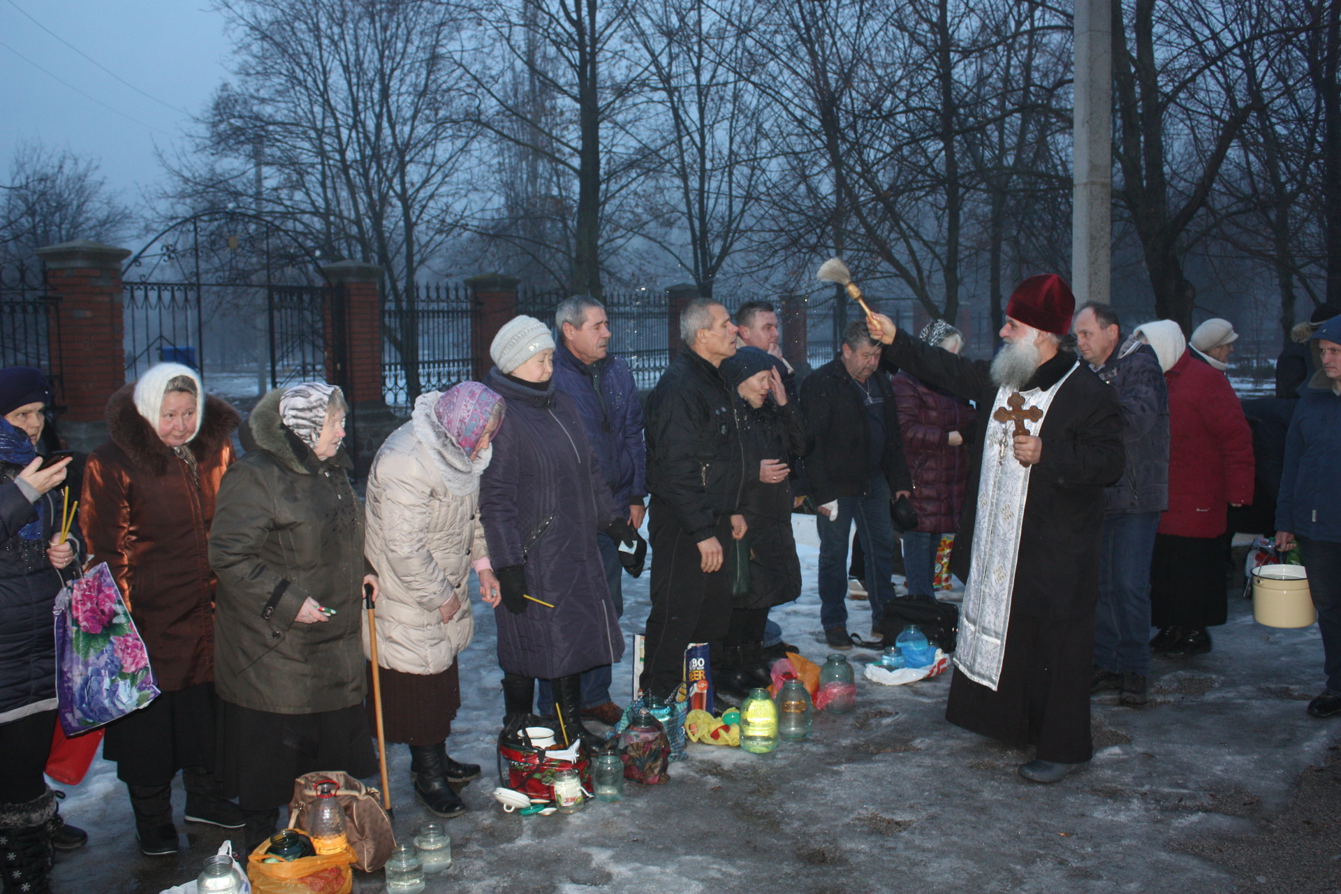 Горожане, которые не попали на богослужение, смогли освятить воду чуть позже, возле храма.