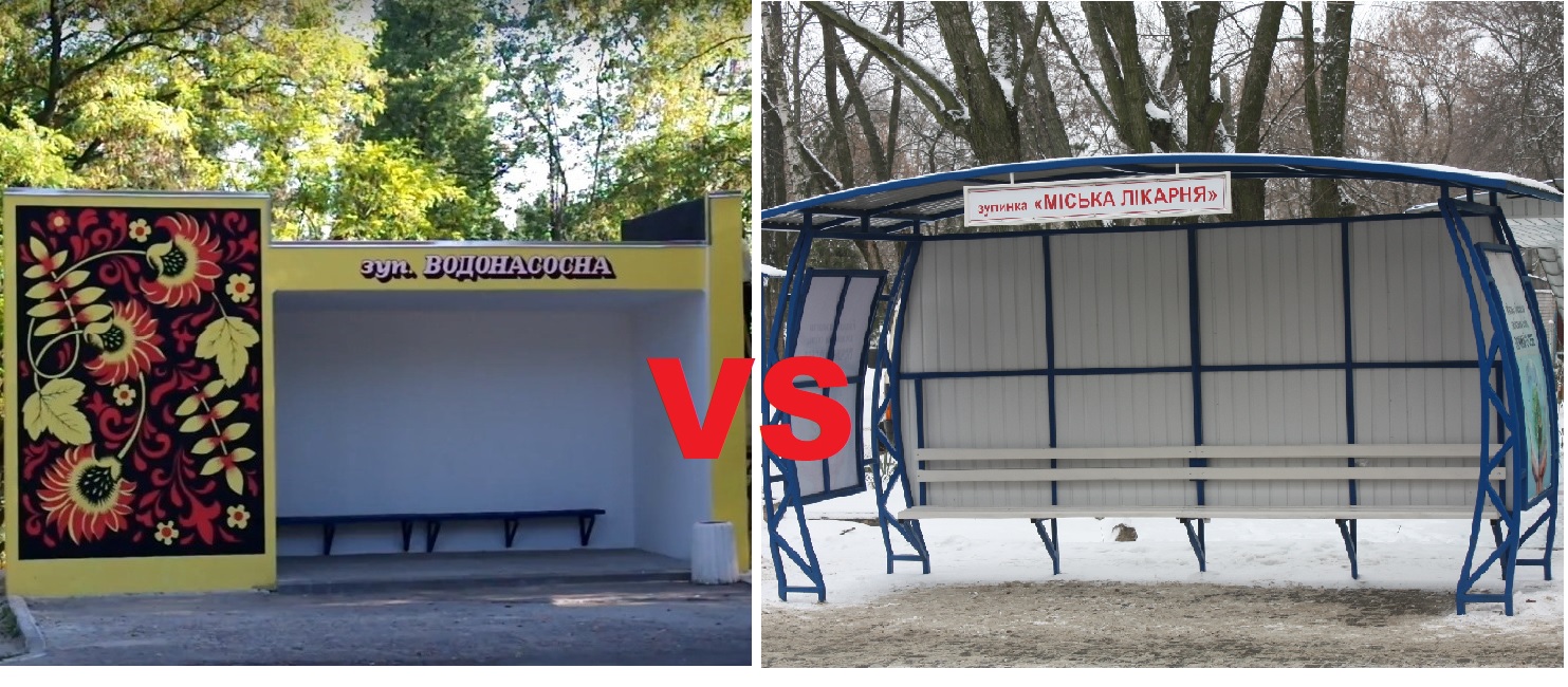 Итак, первый критерий: красивый дизайн. "Легкие" остановки действительно смотрятся эстетически привлекательно. Но это совершенно не значит, что кирпичные остановки нельзя украсить так, чтобы они тоже красиво выглядели. Яркое доказательство этому – остановки общественного транспорта "Водонасосная", "Трикотажная фабрика", "Рудник", "Чертомлык".