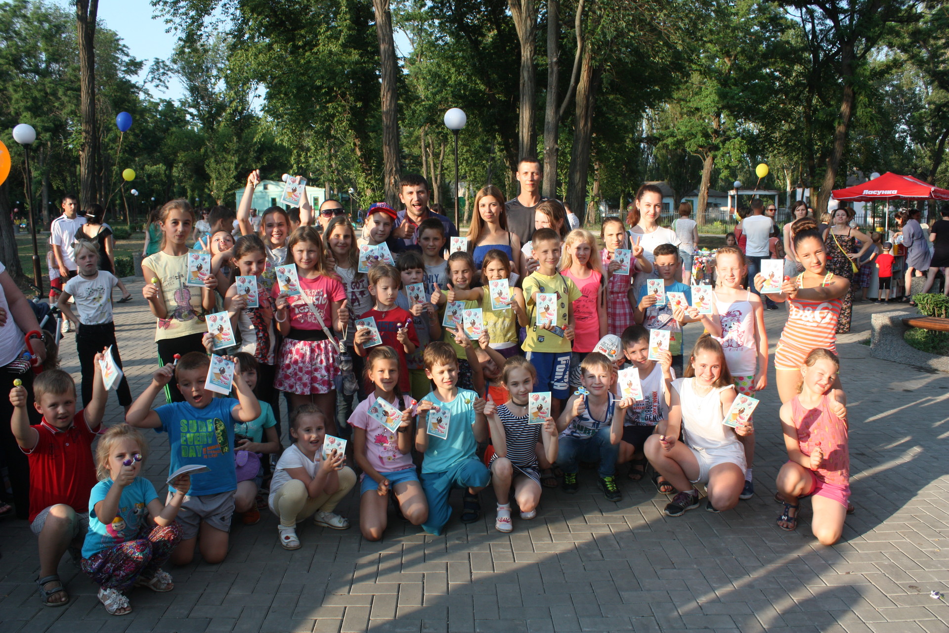 Свои выступления маленьким горожанам подарили преподаватели и воспитанники Дома творчества детей и юношества. Дети с удовольствием пели и танцевали, фотографировались вместе с любимыми персонажами мультфильмов.