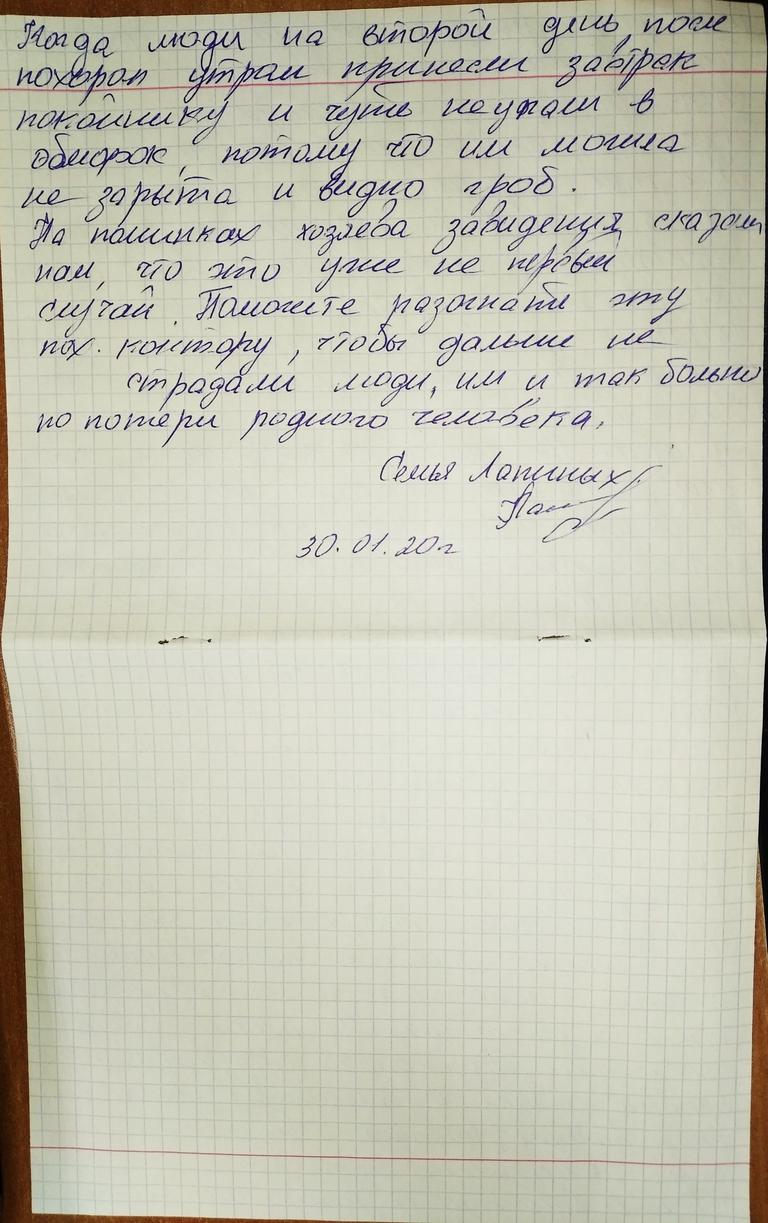 В этот же день похожая трагическая ситуация случилась с еще одной семьей, обратившейся в ту же фирму ритуальных услуг. У них похороны были запланированы на 15:00. но, когда родственники умершей женщины приехали на кладбище, могила также не была готова. Похороны удалось завершить только на следующий день, утром 29-го января! Сложно представить, как себя чувствовали люди, которые потеряли своих родных, так еще и не смогли нормально предать их тела земле…
