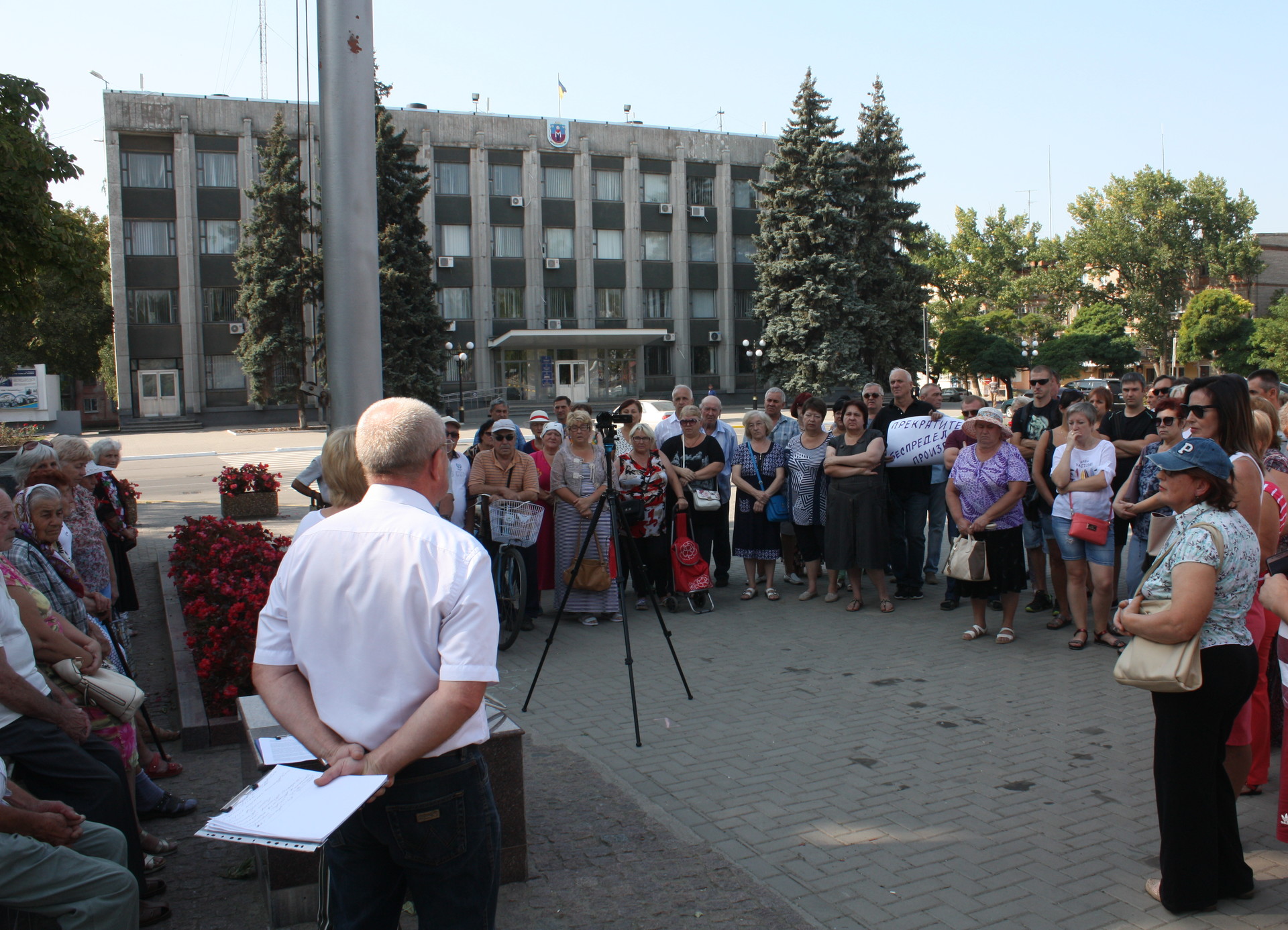 1 сентября на площади имени Ивана Сирко собралось несколько десятков жителей ОСМД "Скіфське містечко" и сочувствующие им горожане. Они протестовали против действий местного подразделения "Днепропетровскгаза", оставившего жителей пяти домов без газа на несколько дней.