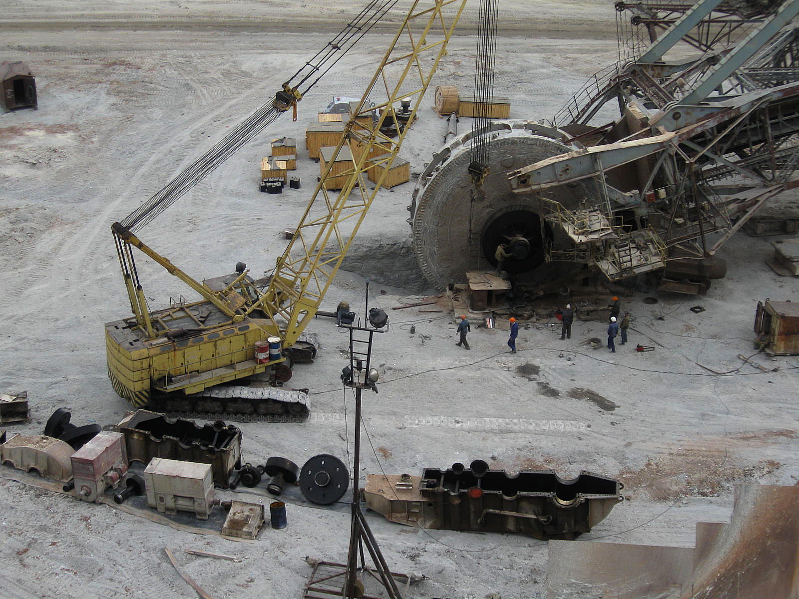 Вторым крупным проектом за эти два месяца стал последний этап капитального ремонта шагающего экскаватора № 128. Здесь основной задачей было выполнить замену вант на стреле и выполнить ремонт механизма шагания. Кроме этого был произведен ремонт блоков наводки, производилась центровка крепления главных лебедок, выполнялся ремонт сборок. Стоит отметить, что в рамках работ по этому экскаватору необходимы были зубчатые муфты, которых на комбинате в момент проведения работ в наличии не было. И здесь нужно отдать должное специалистам нашего Ремонтно-механического цеха, которые впервые, по чертежам проектно-конструкторского отдела, освоил изготовление этих деталей. Конечно все покажет опыт эксплуатации, но сам факт того, что комбинат собственными силами смог изготовить столь сложную деталь уже заслуживает внимание. В настоящий момент экскаватор уже приступил к работе.