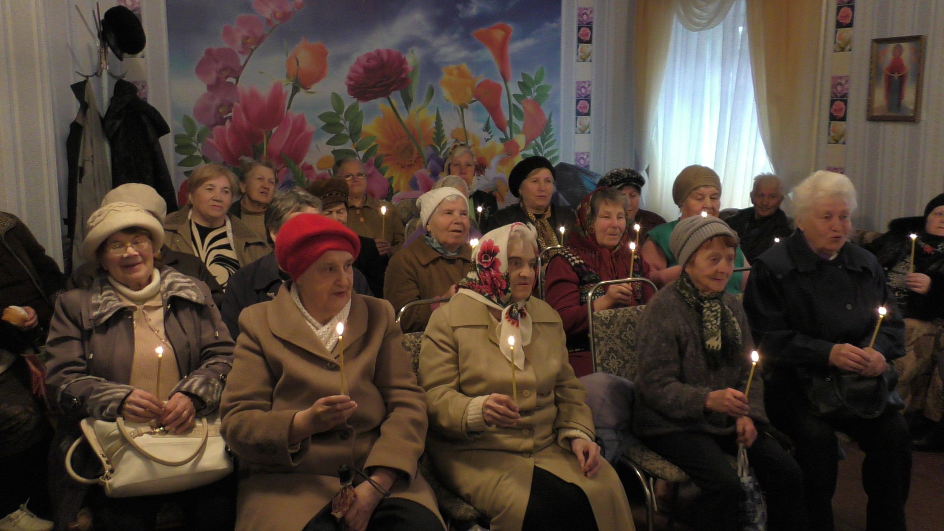 Не обошлось в этот праздничный день и без подарков. Отец Владимир привез пенсионерам свяченые паски и пасхальные яйца. Кроме того, каждый присутствующий мог зажечь свечу от Благодатного огня, который накануне прибыл в наш город из Иерусалима.