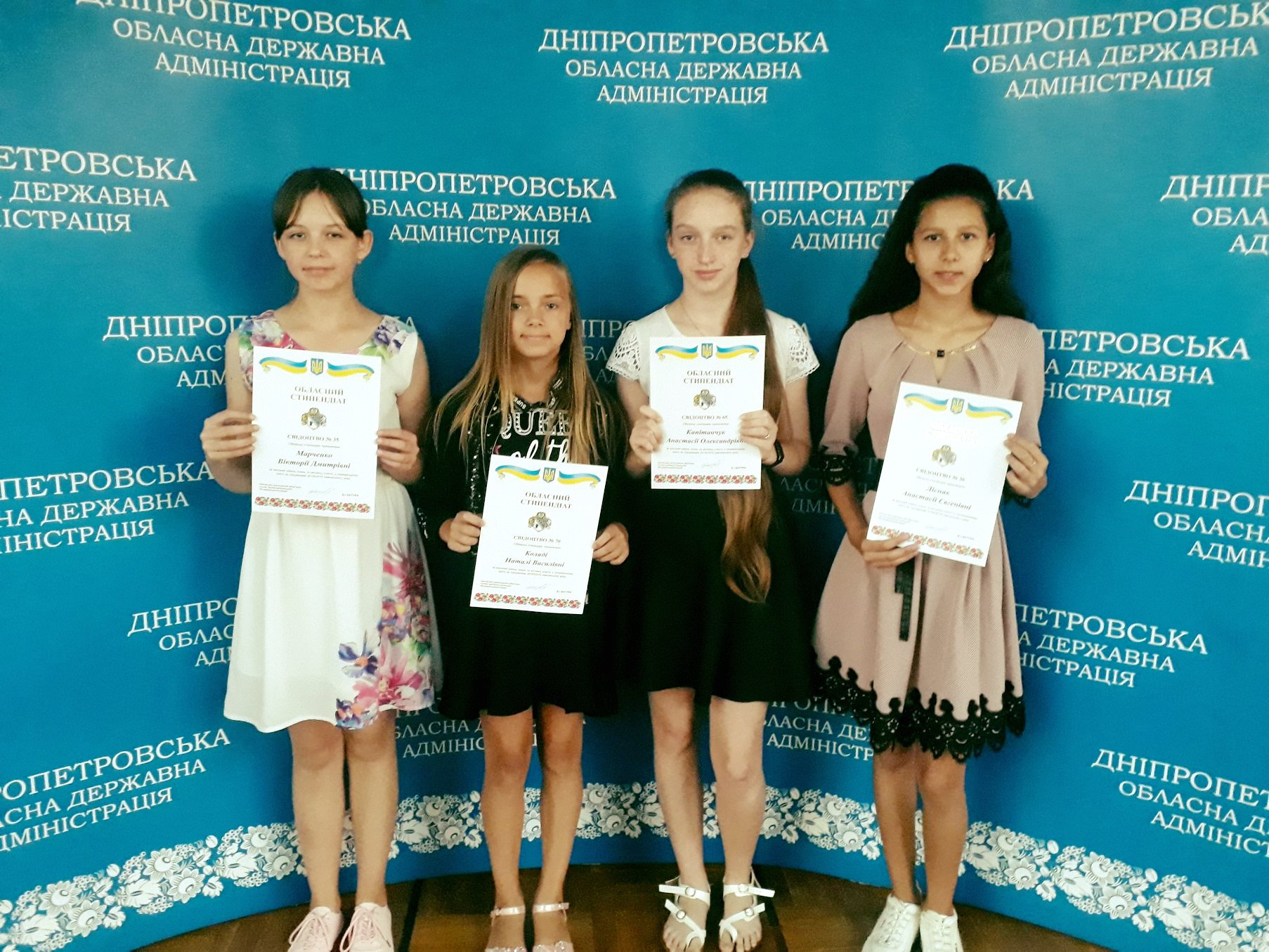 У 1997-му році було започатковано обласну стипендію Дніпропетровської ОДА. Таким грошовим заохоченням за успіхи у навчанні винагороджують сиріт та дітей, позбавлених батьківського піклування. Ці школярі власним прикладом доводять, що попри складні життєві обставини можна досягати успіху. З 1997-го року обласну стипендію вже отримали понад 4 тисячі школярів Дніпропетровщини. Не став винятком і нинішній рік у якому її розмір склав 3,5 тис грн.