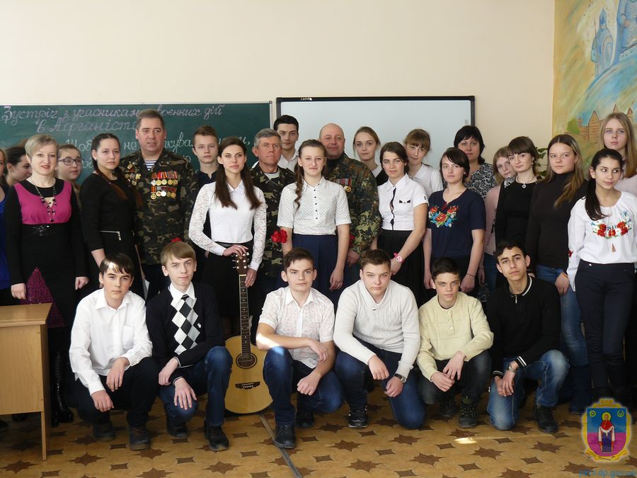Події десятирічної афганської війни стали темою розмови старшокласників закладу з воїнами-інтернаціоналістами - Олександром Грінером, В’ячеславом Труфановим, Ігорем Погребицьким. Фахівці центральної міської бібліотеки винесли її до загальношкільного обговорення, давши можливість молоді висловити своє бачення подій, які торкнулися покоління 80-х.