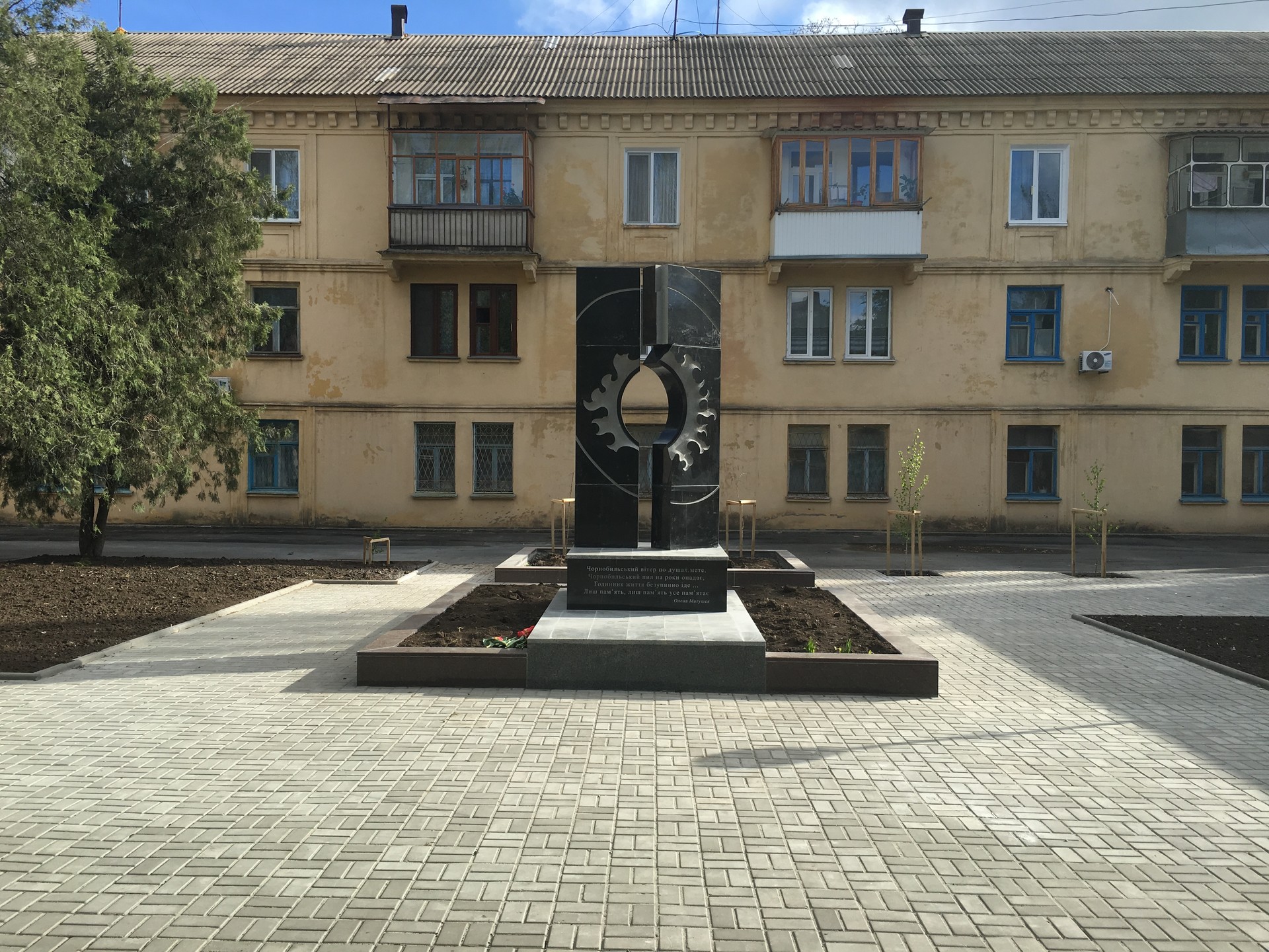 Изначально памятный знак Чернобыльской трагедии был сооружен в 2001 году, ему дали символическое название "Орджоникидзевцам, которые во имя жизни прошли сквозь пламя Чернобыля".