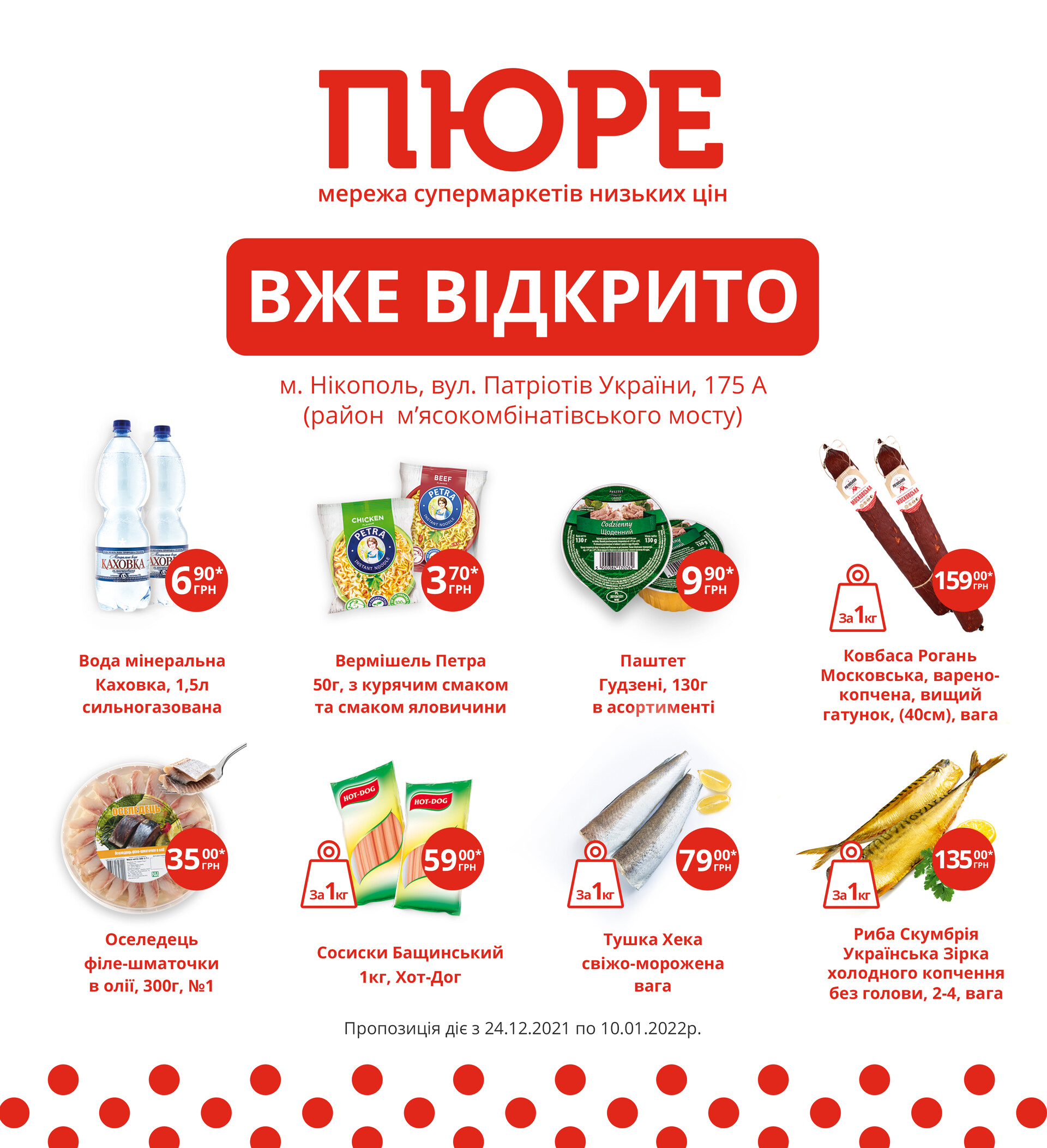 Супермаркет "Пюре" вже відкрито! Реклама 3 січня 2022 р. Акційні пропозиції до 10.01.2022 Теги: акція реклама Попередня новина З НОВИМ РОКОМ! Наступна новина В Покрові діти постраждали від піротехніки Останні новини категорії ВАКАНСІЯ ВОДІЯ Автоцивілка Online - швидко та зручно! Робота!