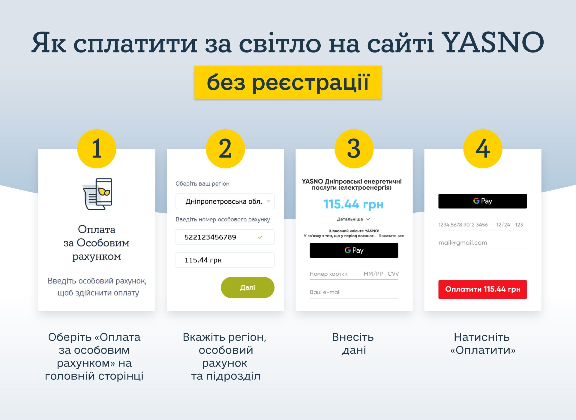 Внести платіж за світло без реєстрації, логіну та паролю тепер можна через нову форму на сайті YASNO. Постачальник просить по можливості підтримувати енергетичний фронт та продовжувати сплачувати за електроенергію.