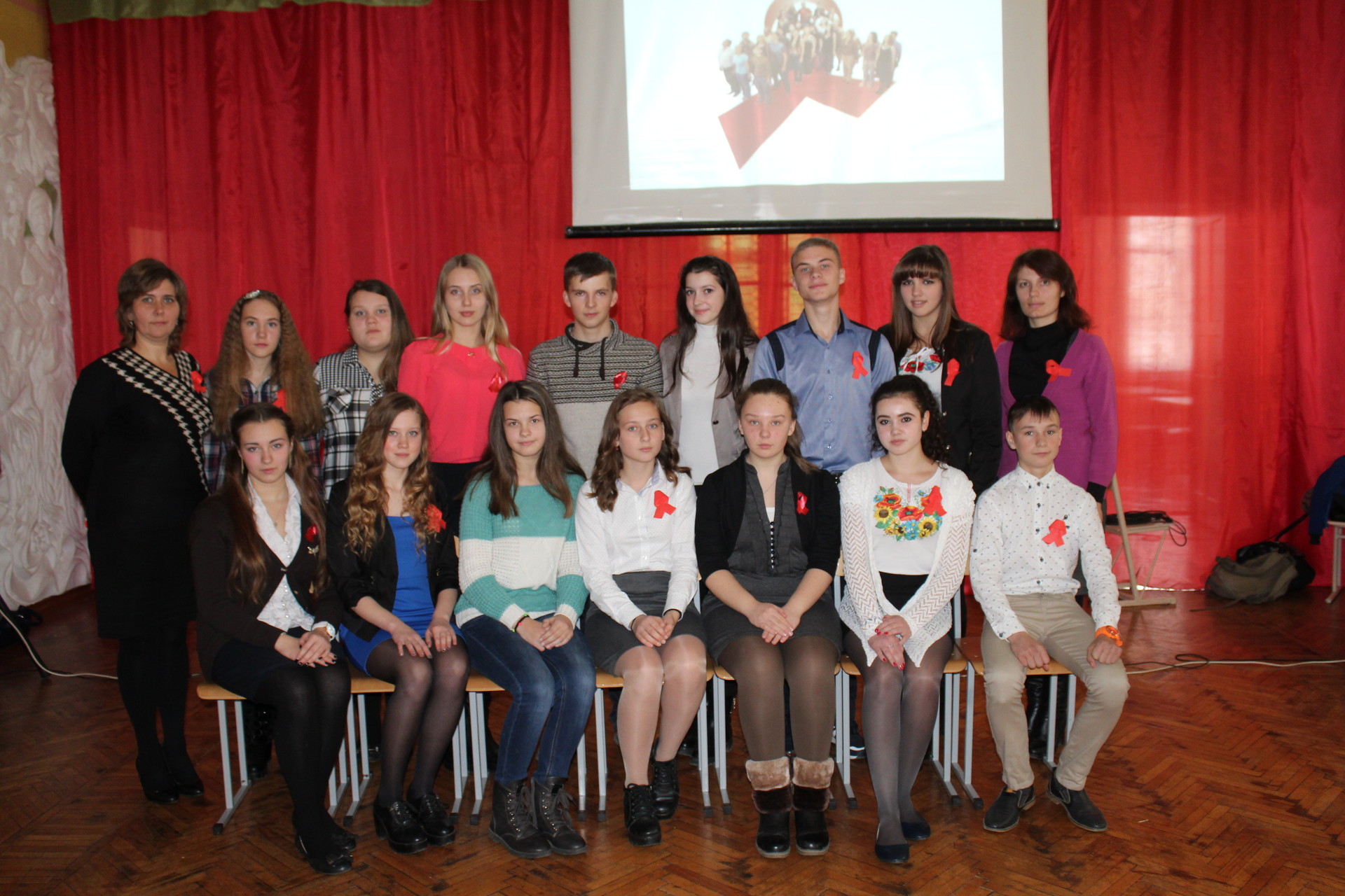 Учні КЗ "СЗШ№2" долучилися до акції "Молодь проти СНІДу". Педагог-організатор Лопатіна О.Л., бібліотекар Захарова А.М. підготували виховний захід для 8-11 класів , де всі учасники (Фесенко Д., Федюк Д., Компанієць А., Компанієць І., Руденко В., Логвінова І., Каламацька В., Груніна А.,Макаренко Т.,Кудоярова А.,Качан І.,Журавель А.,Глущенко К.,Тримбалюк Т. ) повідомили про сумну статистику захворюваності в Україні, переглянули документальний фільм про СНІД,згадали знаменитостей, яких забрала ця страшна хвороба, закликали присутніх вести здоровий спосіб життя та не бути байдужим, висловили свою надію на майбутнє без СНІДу.