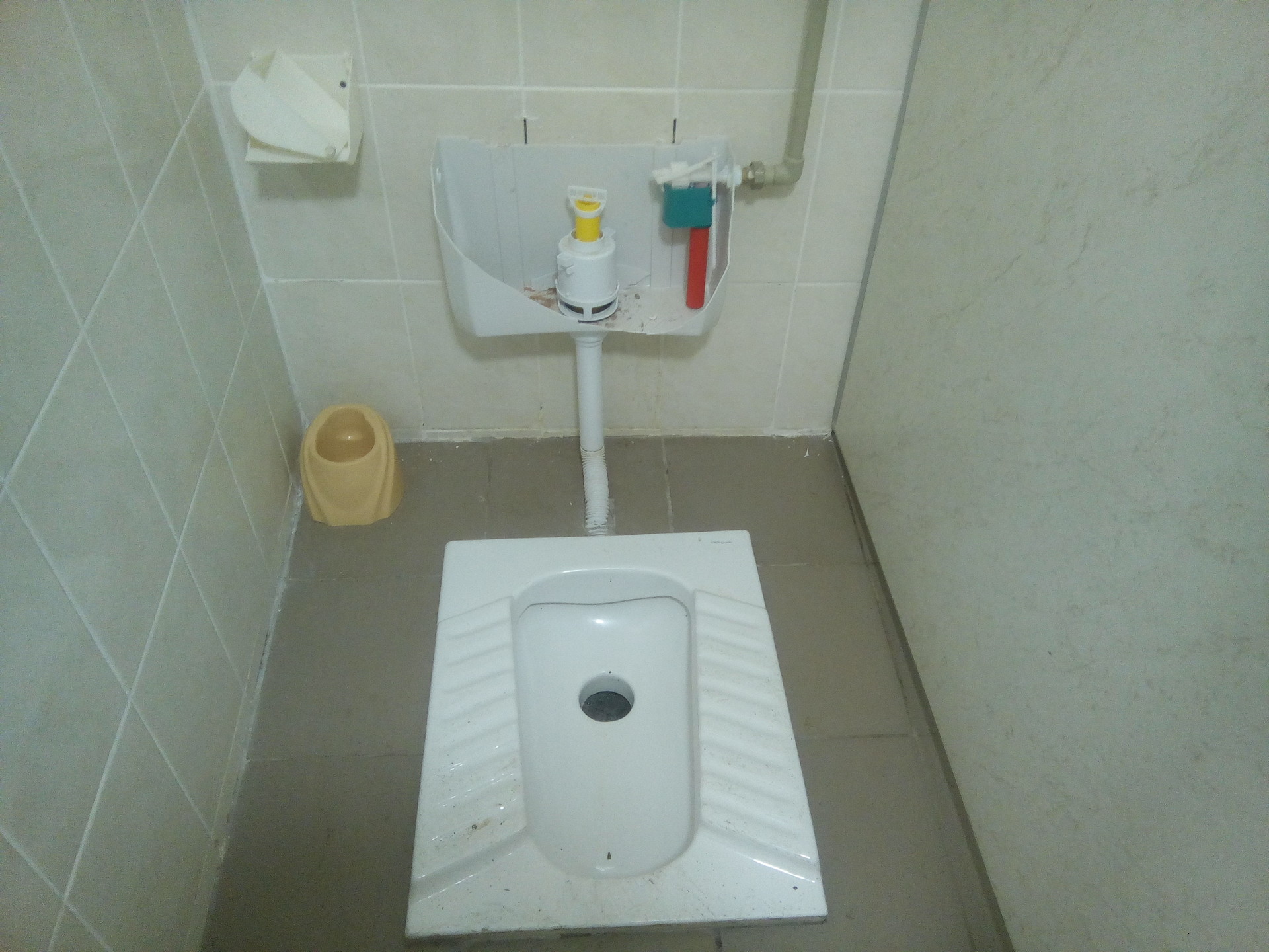 Часть кабинок была закрыта, а часть наоборот, нельзя было закрыть. Хлипкие пластиковые ручки на дверцах не выдержали нескольких недель эксплуатации. А в одной из кабинок кто-то вообще разбил сливной бачок. Кому он, спрашивается, мешал? Из стены сиротливо торчали крепления для конвектора, но самого нагревателя не наблюдалось.