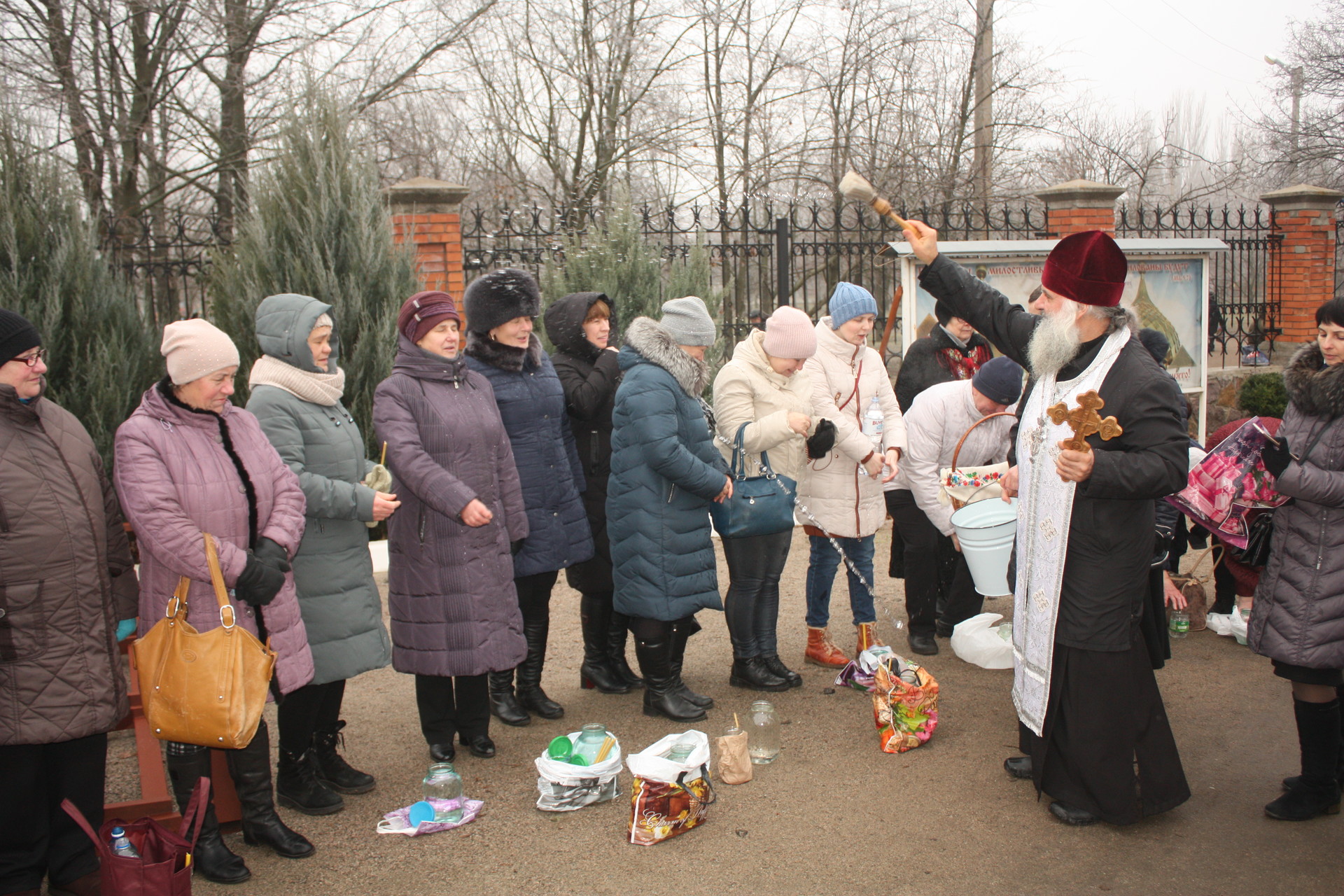 А после богослужения состоялось освящение воды для многочисленных жителей города, собравшихся этим утром вокруг храма.