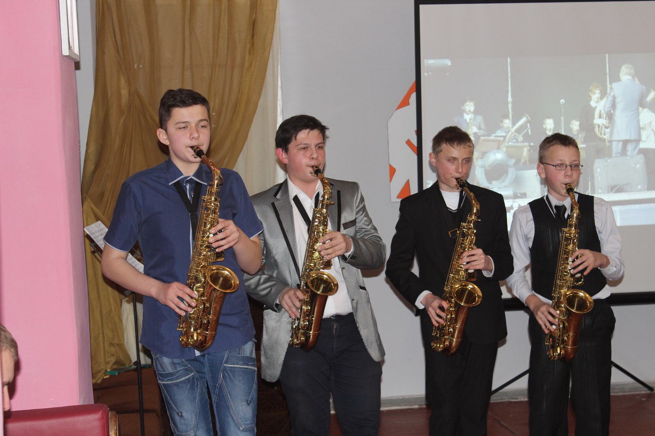 Но главными звездами концерта были, конечно же, юные музыканты. У каждого из четырех саксофонистов оказалась собственная интересная история, связанная с этим музыкальным инструментом. Так, Владислав Оникиенко, когда первый раз взял в руки саксофон, не мог подолгу держать увесистый инструмент в руках, и родителям приходилось подкладывать под него стопку книг. Никита Ремешевский начал заниматься саксофоном, последовав примеру брата. Музыка для него – это хобби, которое радует и поднимает настроение. Ярослав Сидоренко шесть лет занимался игрой на другом духовом инструменте – теноре, достиг в этом деле значительных успехов, побеждал и занимал призовые места на областных музыкальных конкурсах. Но он всегда хотел играть именно на саксофоне. Год назад его мечта сбылась, и теперь Ярослав успешно осваивает новый инструмент. У самого младшего члена коллектива, Вадима Юрикова, пока нет своего саксофона, и он приходит на занятия в музыкальную школу на час раньше остальных, чтобы успеть выполнить домашнее задание. Но все юные саксофонисты сходятся в одном – независимо от того, как дальше сложиться жизнь, станет ли музыка их профессией или будет просто хобби, они никогда не пожалеют о том, что отдали ей свое время и силы.
