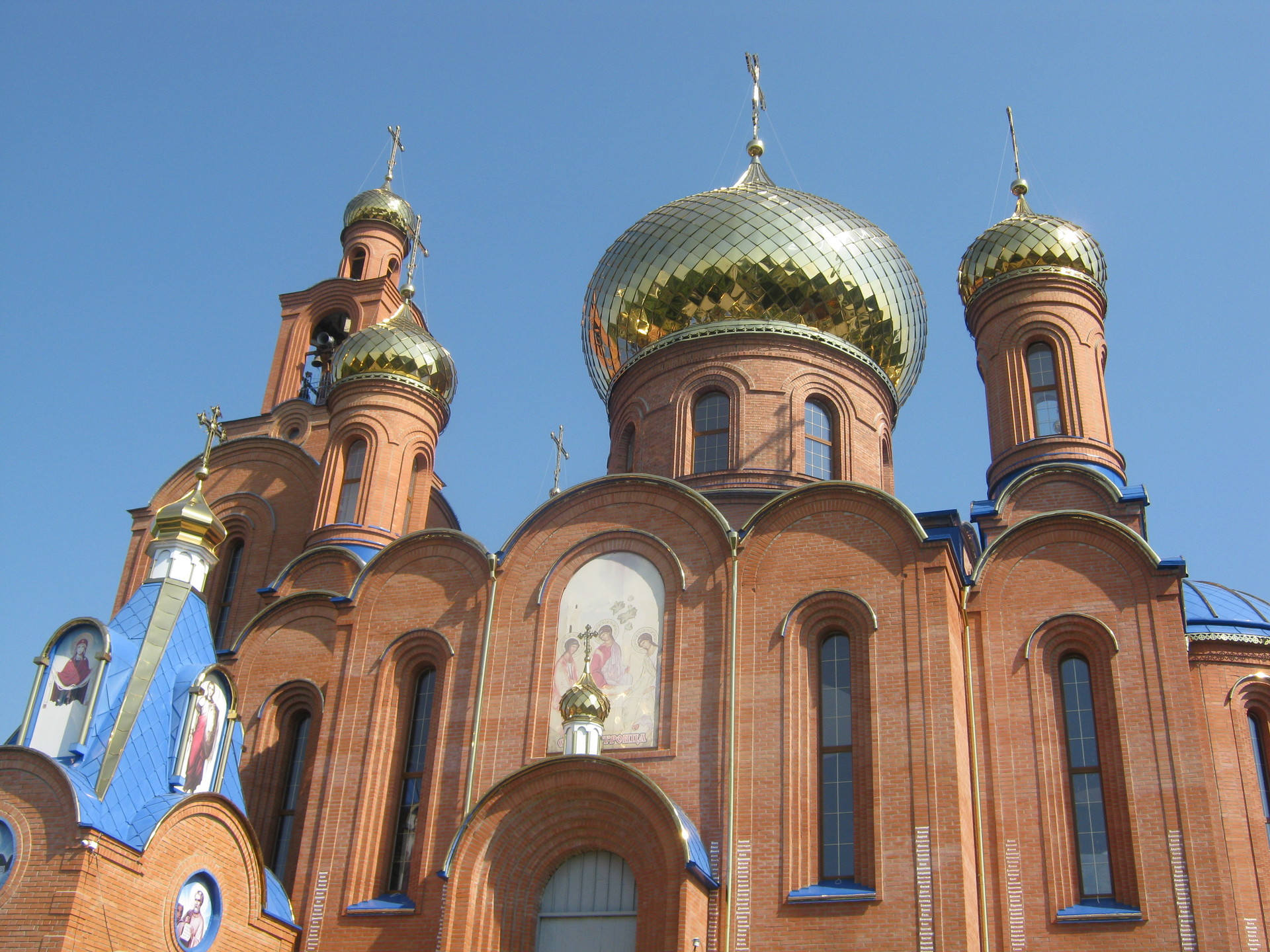 А вот Божественная картинка: мамочка держит годовалую дочечку МИЛОЧКУ (у нее сегодня день рождения). Что-то тихонечко воркует: может быть, "вот когда ты вырастешь, Божий храм уже построится, а ты видела его строительство…"