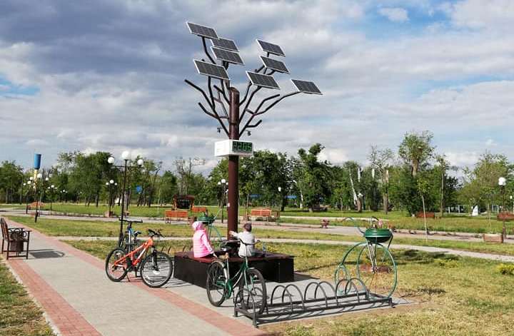 Крім того, навколо розташовані лавочки і невеликий столик, що дозволяють зі зручністю користуватися всіма перевагами високотехнологічної «рослини».