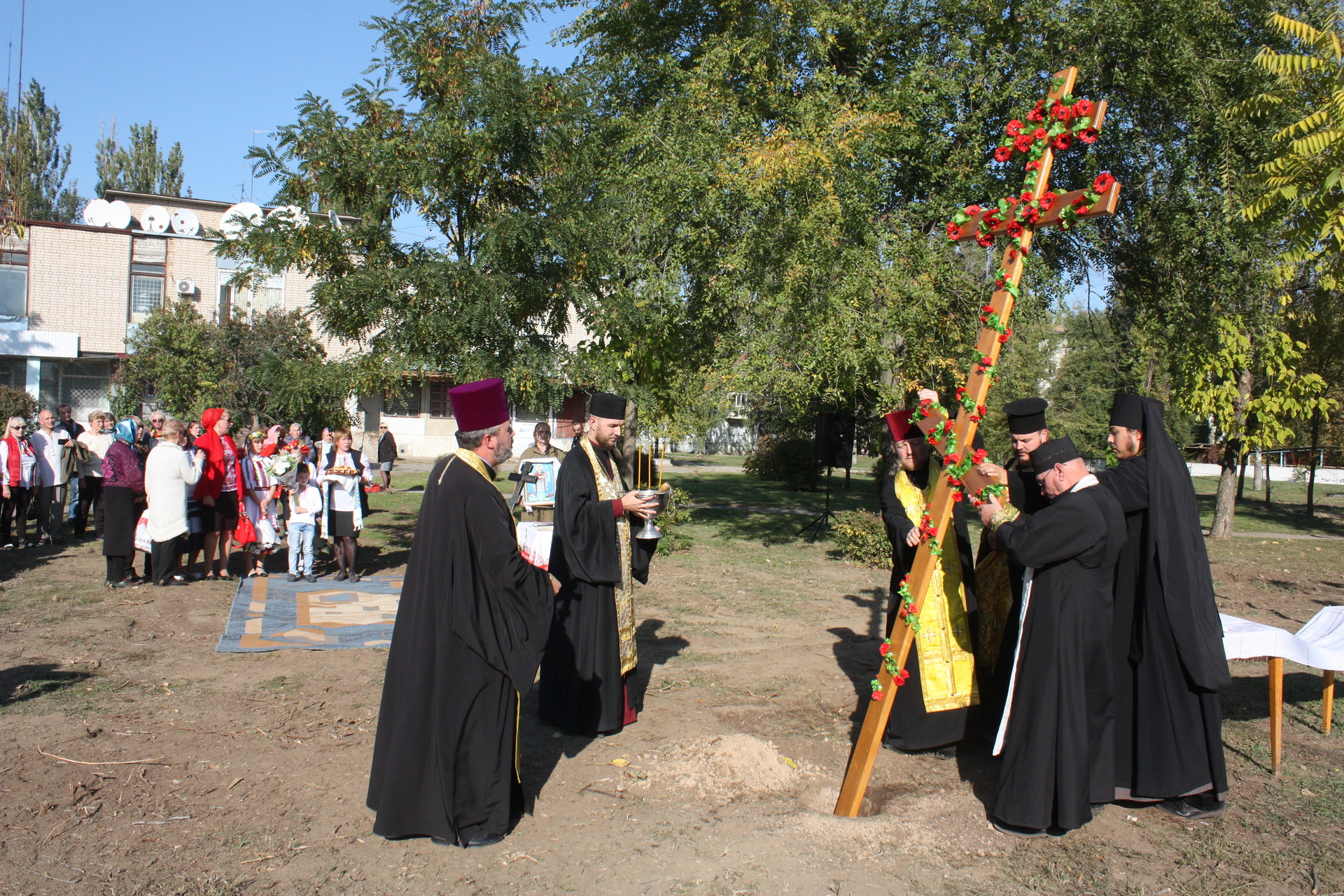 Ділянка, де планується побудувати храм, розташована у сквері між будівлею відділу реєстрації актів цивільного стану (РАЦС) та територією колишньої сьомої школи. Саме тут напередодні свята Покрови зібралися численні віруючі, щоб прийняти участь у церемонії освячення хреста.